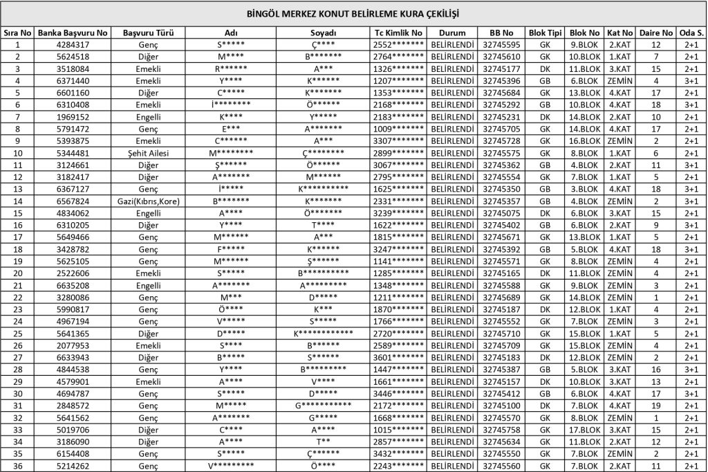 BİNGÖL GÜNCEL TV - Toplu Konut İdaresi Başkanlığı (TOKİ) tarafından Bingöl’de inşa edilen 800 konutun kura sonuçları açıklandı. Peki, hak sahipleri kimler oldu? İşte detaylar…