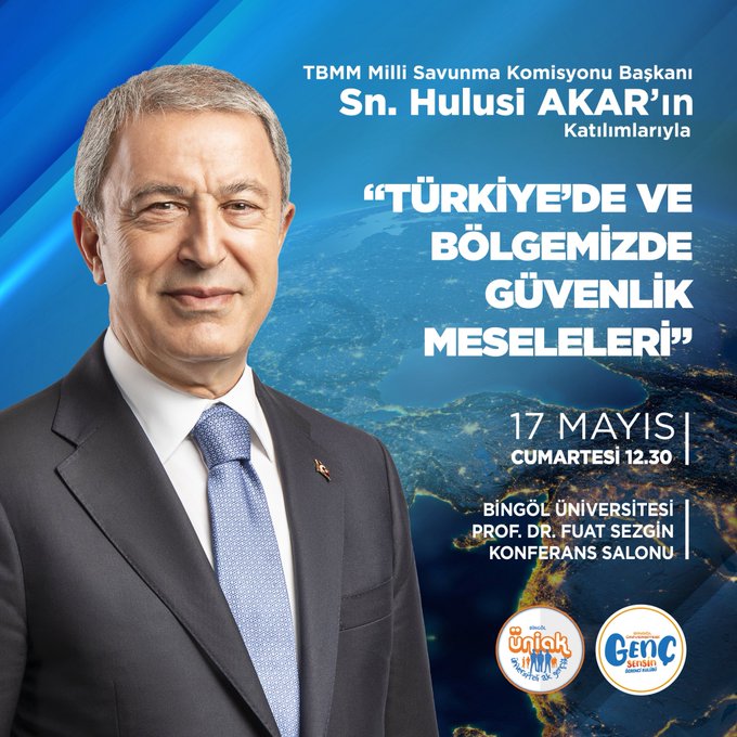 BİNGÖL GÜNCEL TV - Bingöl Üniversitesi, önemli bir etkinliğe ev sahipliği yapmaya hazırlanıyor. TBMM Milli Savunma Komisyonu Başkanı Hulusi Akar’ın katılımıyla gerçekleşecek olan "Türkiye'de ve Bölgemizde Güvenlik Meseleleri" konulu konferans, 17 Mayıs Cumartesi günü saat 12.30’da Prof. Dr. Fuat Sezgin Konferans Salonu’nda düzenlenecek.