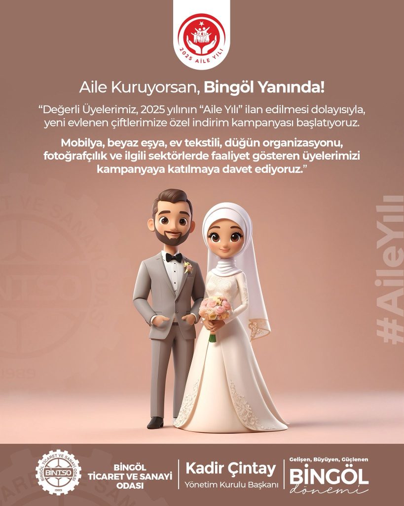 BİNGÖL GÜNCEL TV - Mobilya, beyaz eşya, ev tekstili, düğün organizasyonu, fotoğrafçılık gibi sektörlerde faaliyet gösteren BİNTSO üyesi işletmelerin katılımıyla hayata geçirilen kampanya kapsamında, yeni çiftlere çeşitli indirim ve fırsatlar sunulacak.