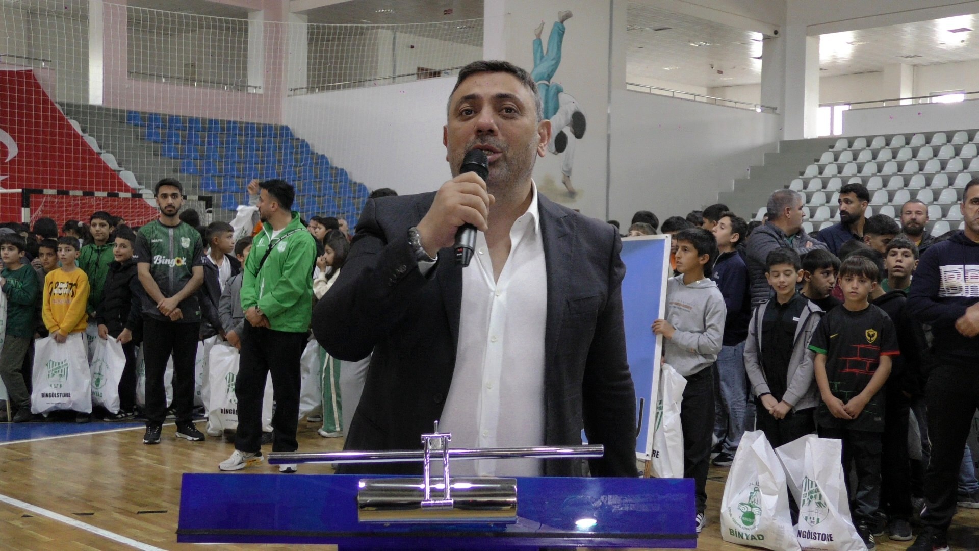 Kapalı Gençlik Spor Tesisi’nde düzenlenen programa, Vali Dr. Ahmet Hamdi Usta, İl Emniyet Müdürü Beyti Kalaycı, 12 Bingölspor Kulübü Başkanı Mehmet Engin Özturan, BİNYAD Başkanı Erdal Çurgatay, BİNYAD Başkan Yardımcısı Erkan Çiftçioğlu ve çok sayıda öğrenci katıldı.