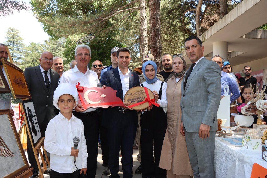 Folklor ekibinin gösterisiyle başlayan programda, Kaymakam Güzel ve ilçe protokolü açılış kurdelesini keserek sergiyi resmen açtı. El sanatları, halı dokuma, giyim üretimi, resim, seramik ve cam teknolojisi, ahşap teknolojisi gibi birçok alanda eğitim alan kursiyerlerin hazırladığı yüzlerce eser sergide yer aldı.