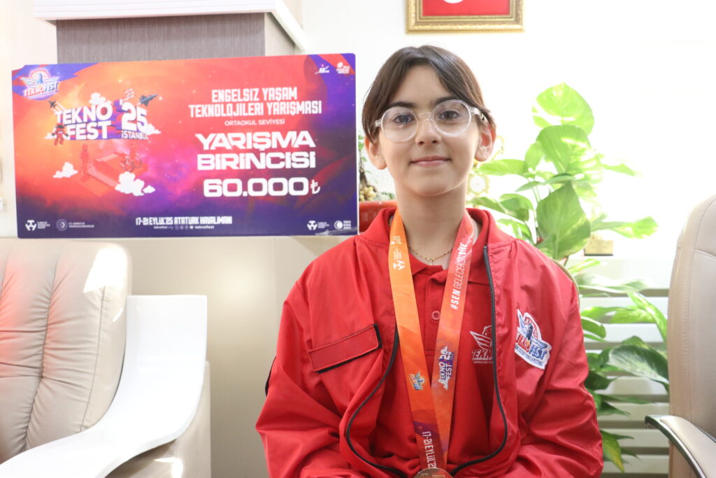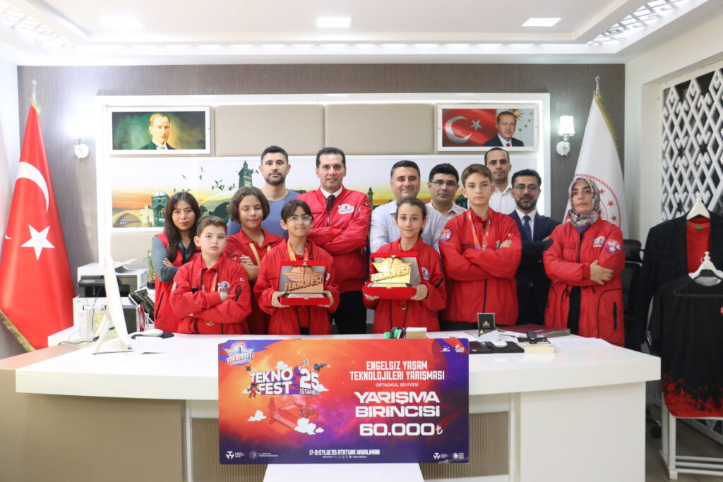 Proje, ‘Engelsiz Yaşam Teknolojileri’ kategorisinde, ortaokul seviyesinde Türkiye 1’incisi oldu, ekip ayrıca ‘En iyi sunum’ ödülünü kazandı. Öğrenciler, elde ettikleri 60 bin liralık ödülün 20 bin lirasını Gazze’deki çocuklara bağışladı.